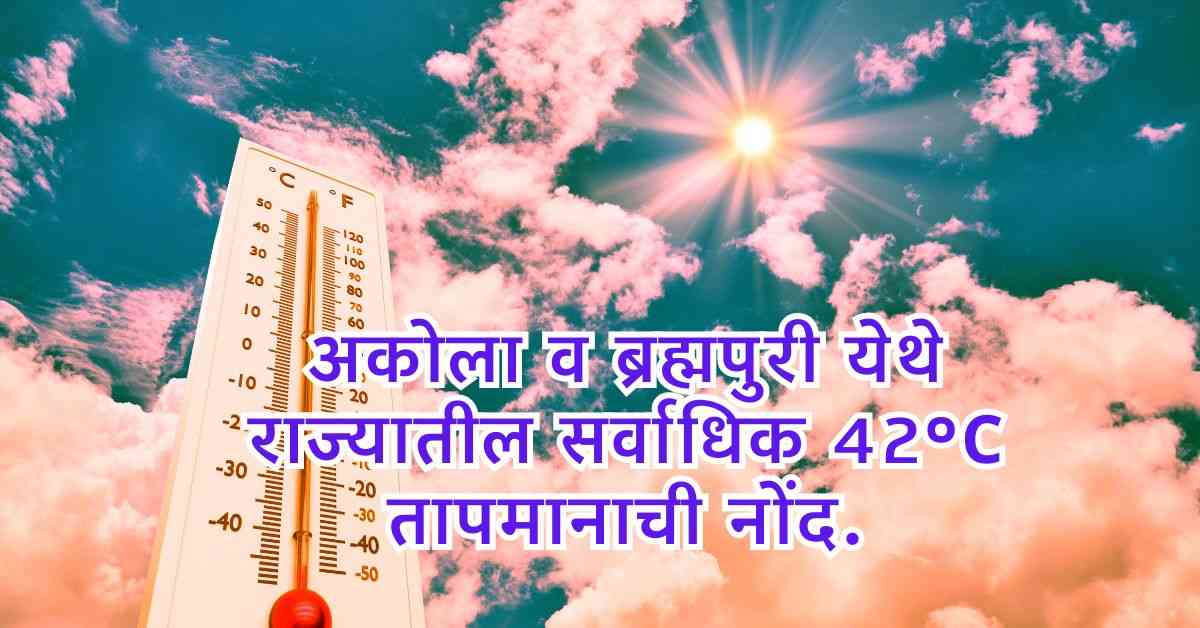 ब्रह्मपुरी येथे राज्यातील सर्वाधिक 42°C तापमानाची नोंद.