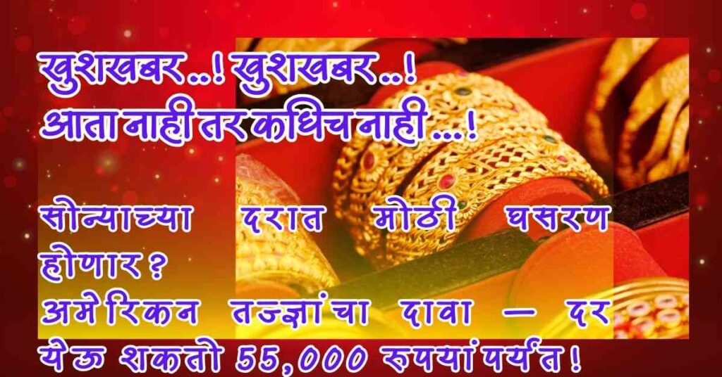 ЁЯУ░рдЕрдореЗрд░рд┐рдХрди рддрдЬреНрдЬреНрдЮрд╛рдВрдЪреНрдпрд╛ рдЕрдВрджрд╛рдЬрд╛рдиреБрд╕рд╛рд░ Gold Price рджрд░рд╛рдд рд▓рд╡рдХрд░рдЪ рдореЛрдареА рдШрд╕рд░рдг рд╣реЛрдгреНрдпрд╛рдЪреА рд╢рдХреНрдпрддрд╛ рдЖрд╣реЗ. рд╕рдзреНрдпрд╛рдЪреЗ рджрд░ 90,000 рд╡рд░ рдЕрд╕рддрд╛рдирд╛, рддреЗ рдереЗрдЯ 55,000 рд░реБрдкрдпрд╛рдВрдкрд░реНрдпрдВрдд рдЦрд╛рд▓реА рдпреЗрдК рд╢рдХрддрд╛рдд. рдЧреБрдВрддрд╡рдгреВрдХрджрд╛рд░ рд╡ рдЧреНрд░рд╛рд╣рдХрд╛рдВрд╕рд╛рдареА рдХрд╛рдп рдЖрд╣реЗ рдпрд╛рдЪрд╛ рдкрд░рд┐рдгрд╛рдо? рдЬрд╛рдгреВрди рдШреНрдпрд╛ рд╕рд╡рд┐рд╕реНрддрд░!
