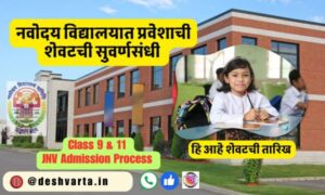 नवोदय विद्यालय मध्ये ऍडमिशन घेण्यासाठी एक शेवटचे सुवर्णसंधी विद्यार्थ्यांकरीता उपलब्ध झालेली आहे कारण इयत्ता नववी आणि अकरावी ऍडमिशन करिता नवोदय विद्यालय समितीने शेवटची तारीख वाढवलेली आहे त्यामुळे इच्छा होते की आपण नवोदय मध्ये शिक्षण घेतल्या पाहिजे त्यांच्यासाठी हे एक शेवटची सुवर्णसंधी म्हणावे लागेल.