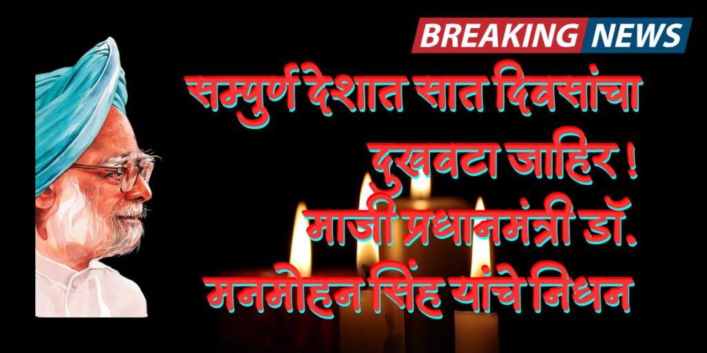 माजी प्रधानमंत्री डॉ. मनमोहन सिंह यांचे निधन झालेला आहे, जगभरात अर्थतज्ञ म्हणून ख्याती मिळवलेले मनमोहन सिंह हे वयाच्या 92 व्या वर्षी कालवत झालेत, दिल्लीच्या एम्स रुग्णालयात मनमोहन सिंह यांनी अखेरचा श्वास घेतलेला आहे. काँग्रेसचे वरिष्ठ नेते समजले जाणारे आणि अर्थशास्त्री आणि माजी पंतप्रधान मनमोहन सिंह यांचं आता निधन झालेला आहे. एम्स मध्ये त्यांनी अखेरचा श्वास घेतलाय, गुरुवार दि. २६.१२.२०२४ रोजी रात्री 9:51 मिनिटांनी त्यांचा निधन झाल्याचं घोषित करण्यात आलेलं आहे.