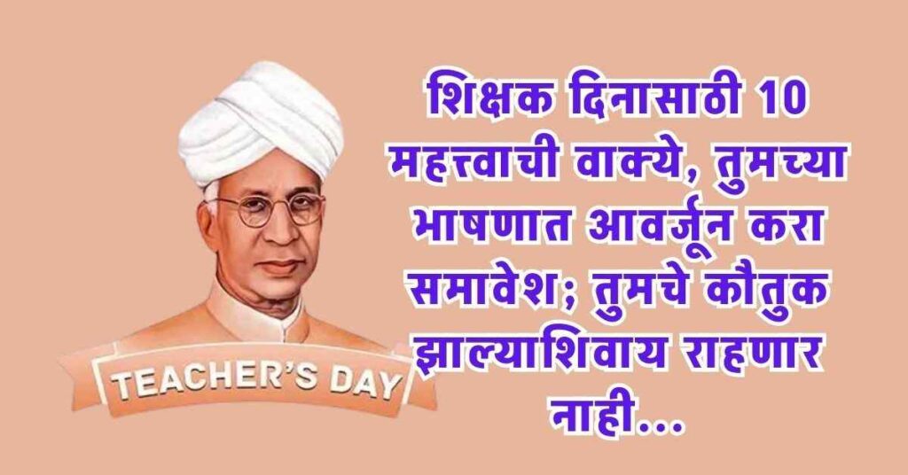 जर तुम्ही या शिक्षक दिनाच्या निमित्ताने शाळा किंवा महाविद्यालयात निबंध किंवा भाषण स्पर्धेत भाग घेणार असाल तर हां लेख तुमच्यासाठी उपयुक्त ठरू शकतो. येथे आम्ही शिक्षक दिनाशी संबंधित १० महत्त्वाची प्रभावी वाक्ये सांगत आहोत, ज्या तुम्ही निबंध किंवा भाषणासाठी वापरू शकता आणि ते तुमच्याकारिता प्रभावी बनवू शकतात.